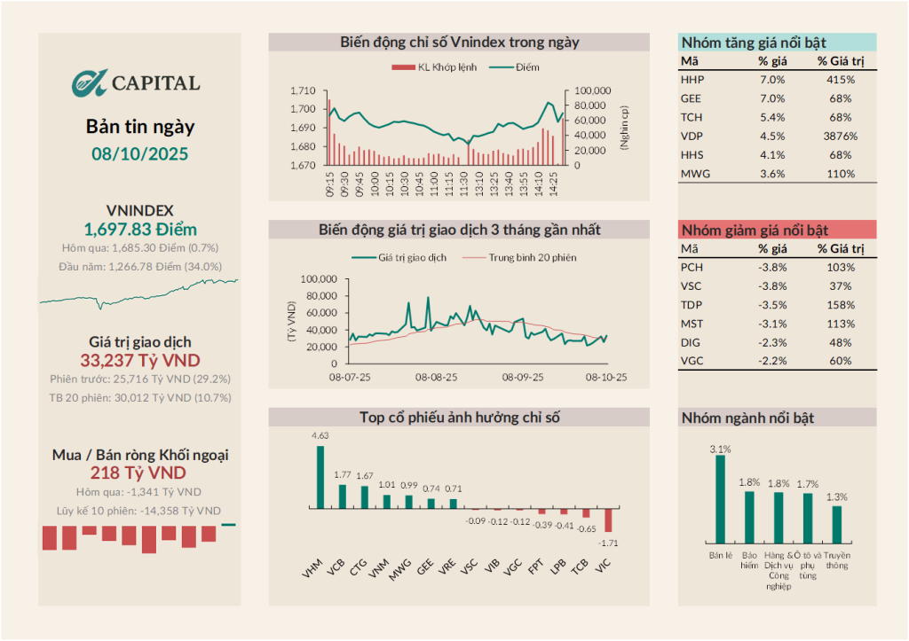 A-Capital mang đến cho bạn bản tin chứng khoán mỗi ngày – nơi những con số trở thành câu chuyện về dòng tiền, xu hướng và cơ hội. Hãy cùng khám phá bức tranh thị trường ngay dưới đây.
