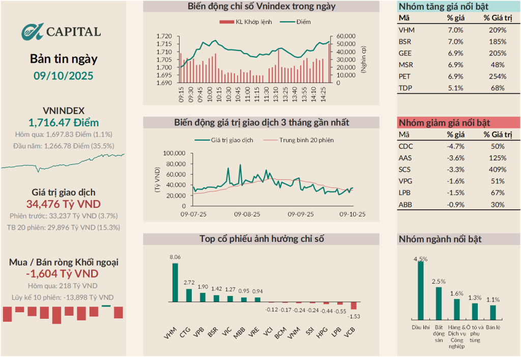 A-Capital mang đến cho bạn bản tin chứng khoán mỗi ngày – nơi những con số trở thành câu chuyện về dòng tiền, xu hướng và cơ hội. Hãy cùng khám phá bức tranh thị trường ngay dưới đây.