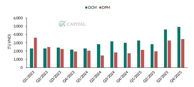 • Với diễn biến tích cực của giá Urea, A-Capital kì vọng lợi nhuận 2026 của DCM và DPM tăng tối thiểu 100% so với năm 2025.