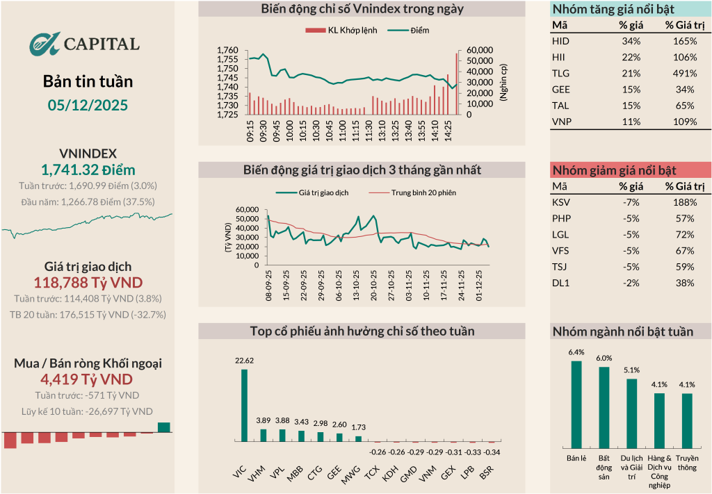 Mỗi tuần trôi qua, thị trường lại kể cho chúng ta những câu chuyện khác nhau: khi thì là sự mạnh mẽ của dòng tiền, khi lại là khoảnh khắc nghỉ ngơi trước sóng mới. Ở đây, chúng tôi giúp bạn nhìn lại những gì đã diễn ra và hiểu rõ hơn các yếu tố đang dẫn dắt thị trường. Cùng A-Capital điểm lại tuần qua và chuẩn bị tinh thần cho những cơ hội phía trước nhé.