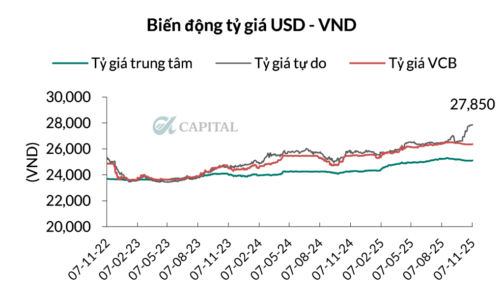 - Tỷ giá VNDUSD thị trường tự do vẫn tiếp tục neo cao ở mức 27,850 VND bất chấp các thông tin tăng lãi suất từ hệ thống ngân hàng là 1 trong những nguyên nhân chính khiến thị trường gặp áp lực điều chỉnh.