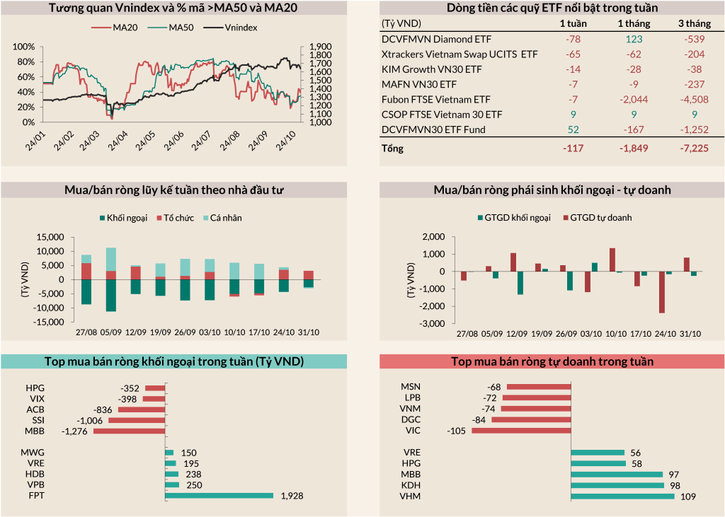 - Thị trường có sự hồi phục so với tuần trước với số mã > MA20 chiếm 40% và >MA50 chiếm 35%.