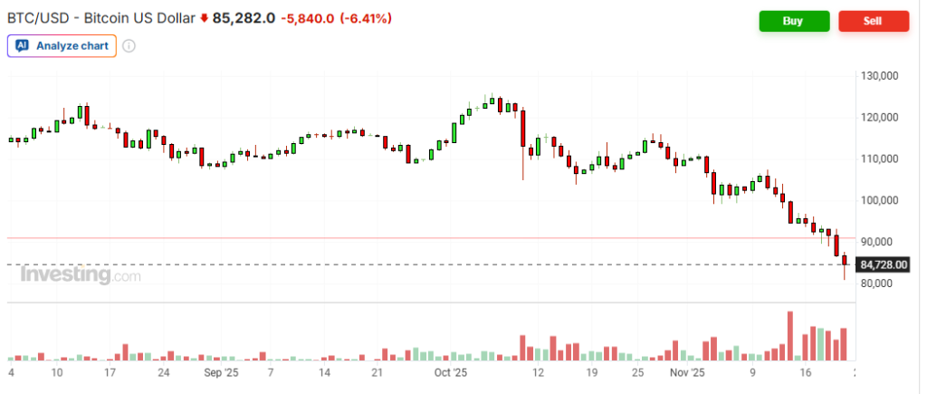 THÁNG 11/2025 đang trôi về những ngày cuối, và chúng ta đang cảm nhận được một làn sóng giảm giá của tất cả các tài sản tài chính. Dù chưa quá hoảng loạn, nhưng không thể không chú ý khi Bitcoin đã giảm nhanh xuống quanh mốc 80.000 USD, trong khi đầu tháng 11 vẫn quanh 100.000 USD. Chứng khoán Mỹ và cả vàng gần đây cũng đều giảm mạnh, dù chưa có quá nhiều thông tin tiêu cực.