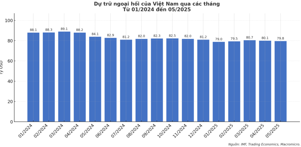 Vai trò “bộ đệm” của dự trữ ngoại hối: Để làm dịu biến động tỷ giá, Ngân hàng Nhà nước có xu hướng bán ngoại tệ can thiệp, và điều này trực tiếp làm suy giảm quy mô dự trữ ngoại hối cũng như tỷ lệ dự trữ/nhập khẩu. Từ tháng 5/2025, Việt Nam chưa công bố dự trữ ngoại hối của mình.