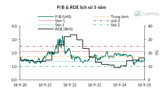 - P/B forward cuối năm 2025 ước tính đạt 1.37x