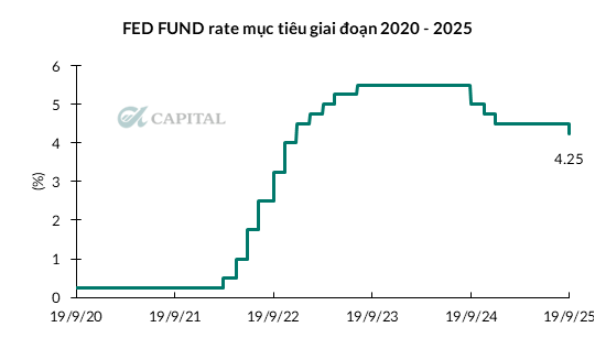 - Cục Dự trữ Liên bang Mỹ (Fed): giảm 25 điểm cơ bản, đưa lãi suất chính sách về mức 4,13%, đánh dấu lần cắt giảm thứ 4 trong chu kỳ. Dự kiến giảm tiếp 2 lần trong phần còn lại của năm.